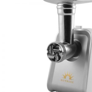 چرخ‌گوشت سفید ایران سان رایز از جدیدترین محصولات عرضه‌شده توسط ایران سان رایز است. این محصول ظاهری کلاسیک و در واقع مشابه نسل قدیمی تر خود دارد و شامل بدنه پلاستیکی سفید بعلاوه قطعات فلزی و متعلقات است. کیفیت ساخت بدنه بالا بوده و از مواد مرغوب استفاده‌شده است تا علاوه بر زیبایی ظاهر، از موتور جدید با حداکثر قدرت 2500 وات، محافظت کند. زیربدنه اصلی پایه‌های ضد لغزش در نظر گرفته‌شده است تا با حرکت موتور لرزش و لغزشی ایجاد نشده و خطری بروز نکند. گلویی دستگاه در جلو با پیچ محکم شده و سینی فلزی روی آن قرار می‌گیرد. مارپیچ فلزی چرخ‌گوشت سفید ایران سان رایز داخل لوله، تیغه و شبکه بر روی آن نصب‌شده و با پیچ نهایی محکم می‌شوند. نصب قطعات بسیار راحت بوده و سریع انجام می‌شود. سیم برق در پشت دستگاه است و از طول مناسبی برخوردار است که پس از اتمام کار می‌تواند در محفظه مربوطه قرار گیرد. دستگاه با دکمه‌های روی آن روشن و خاموش می‌شود. البته دکمه چرخش معکوس هم در این مدل در نظر گرفته‌شده است. از این دکمه در مواردی که گوشت یا مواد غذایی داخل دستگاه به هر علتی گیرکرده و چرخ نمی‌شوند استفاده می‌شود. همچنین با رعایت احتیاط می‌توان برای خارج کردن راحت تیغه و مارپیچ هم استفاده شود. پس از روشن کردن دستگاه با رعایت احتیاط قطعات گوشت وارد دستگاه شده و چرخ می‌شوند. قدرت و قابلیت دستگاه باعث می‌شود تا مقدار زیادی گوشت در ساعت چرخ شوند. دسته پلاستیکی برای فشار دادن گوشت و هدایت آن‌ها به سمت مارپیچ نیز وجود دارد. قطعات فلزی و کبه ساز در محفظه بالایی دستگاه جای می‌گیرند تا گم نشوند.
