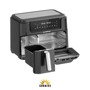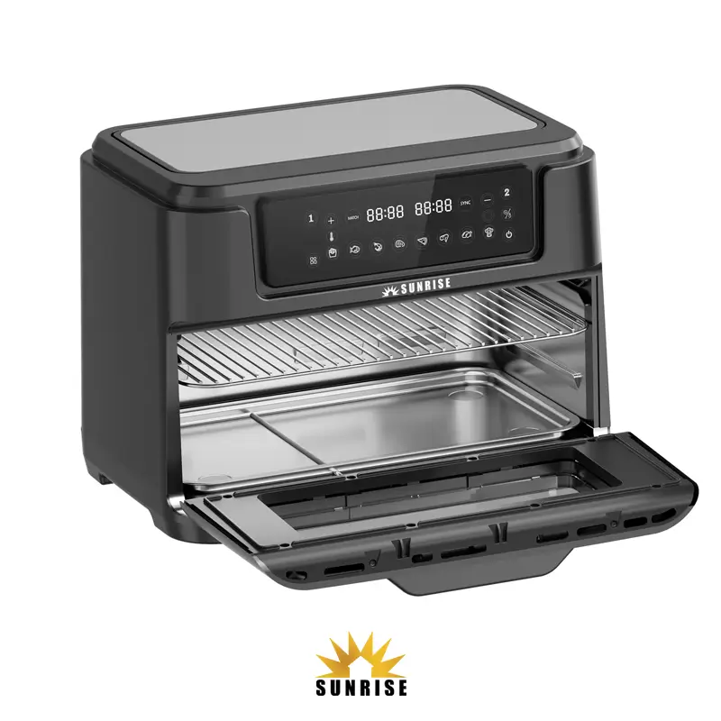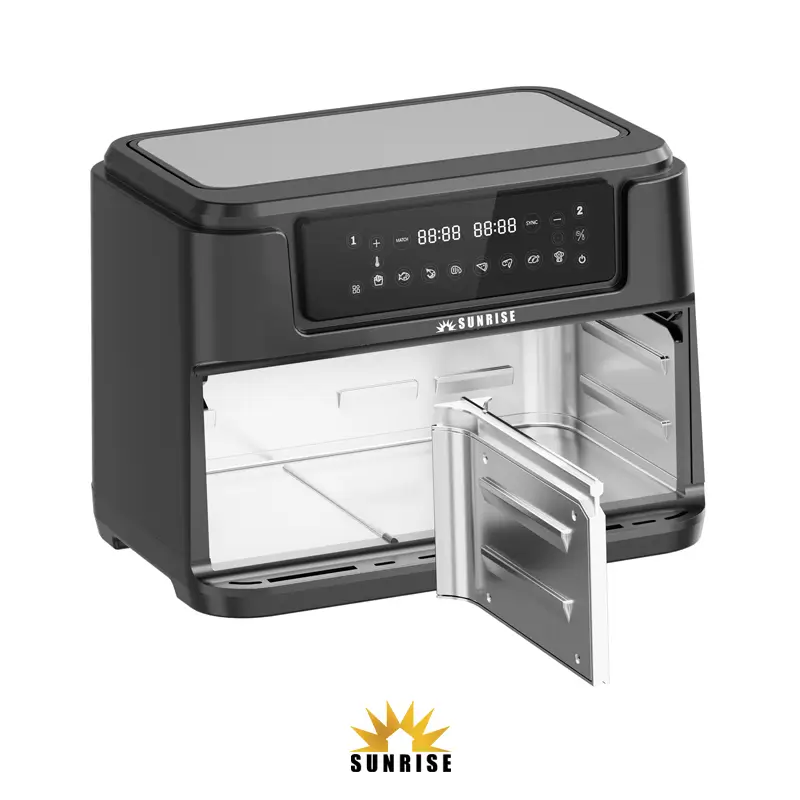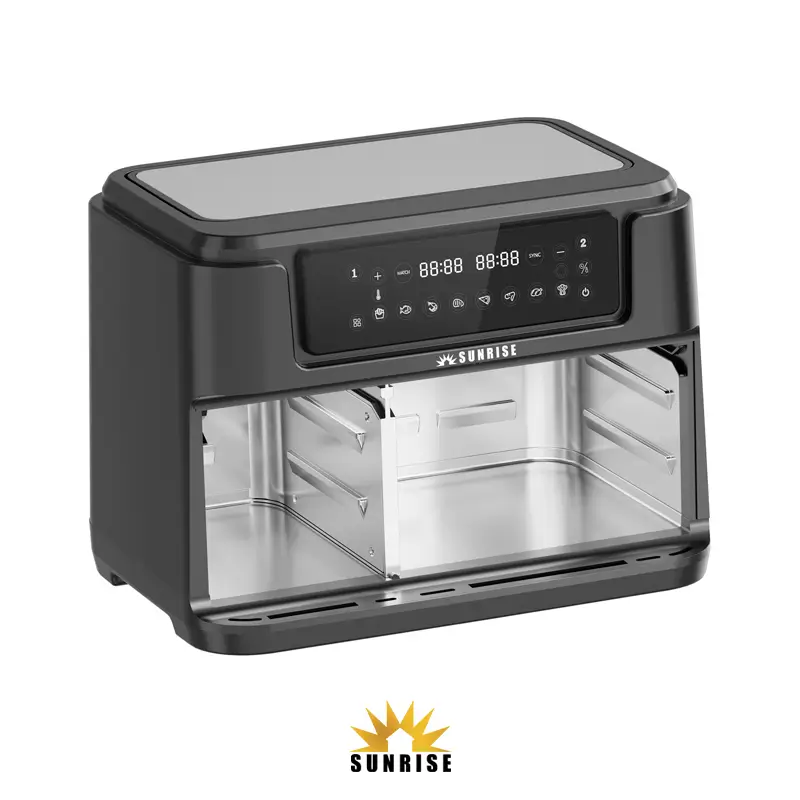 | پنل کنترل دستگاه | نمایشگر دیجیتال دوگانه, دکمه روشن/خاموش, برنامههای پیشفرض پخت, تنظیم دستی دما, تنظیم دستی زمان, دکمه انتخاب سبد 1 و 2 برای کنترل مستقل هر محفظه, دکمههای + و – جهت افزایش یا کاهش زمان و دما, عملکرد MATCH برای اجرای تنظیمات یکسان در هر دو محفظه, عملکرد SYNC جهت هماهنگسازی پایان پخت دو محفظه, کنترل جداگانه زمان و دما برای هر محفظه |