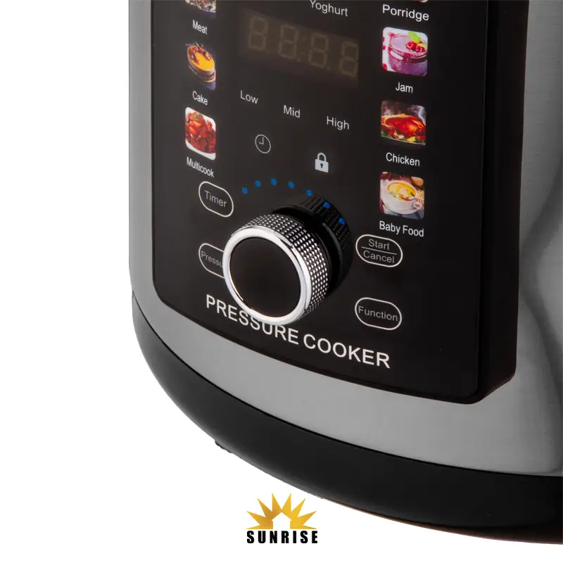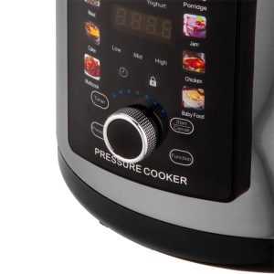 | امکانات و تنظیمات دستگاه | انتخاب سطح فشار, برنامههای پخت پیشفرض, تایمر برای تنظیم زمان پخت, سطوح فشار قابل انتخاب (کم / متوسط / زیاد), شروع و توقف برنامه, قفل ایمنی برای جلوگیری از تغییرات ناخواسته, نمایشگر دیجیتال LED با نمایش زمان، حالت پخت و سطح فشار, ولوم چرخشی انتخاب برنامه |